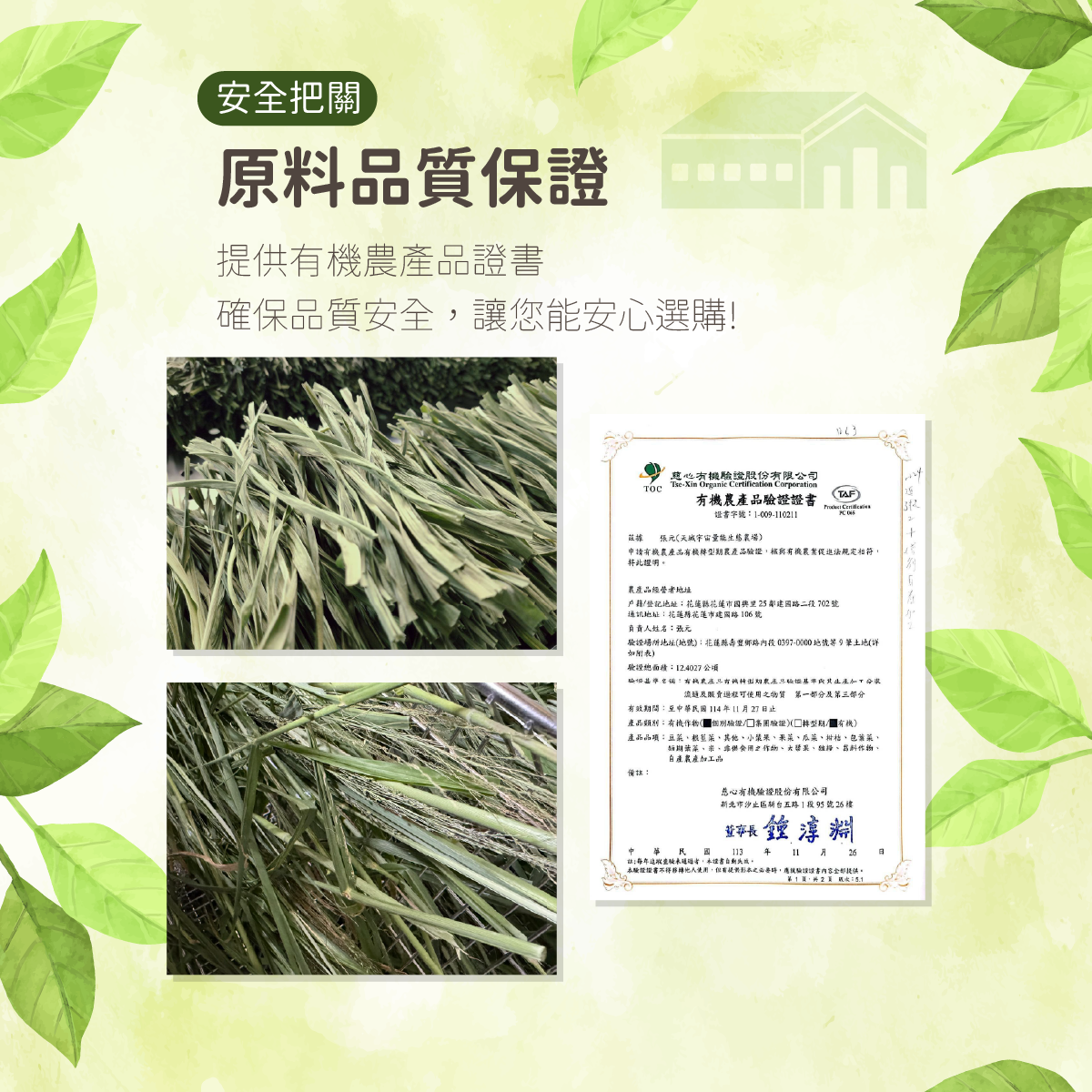 ✅原料品質保證 - 提供有機農產品證書