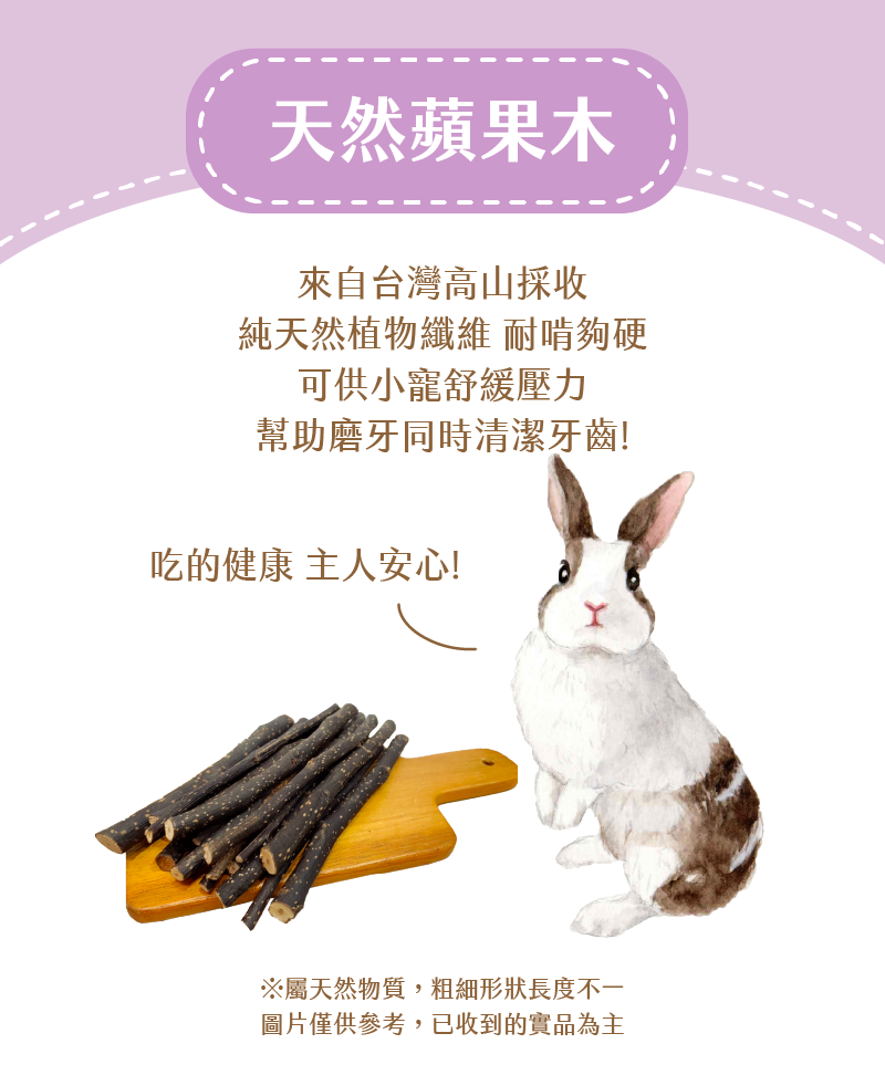 來自台灣高山蘋果木,經篩選、修整、浸泡、沖洗、烘乾製成